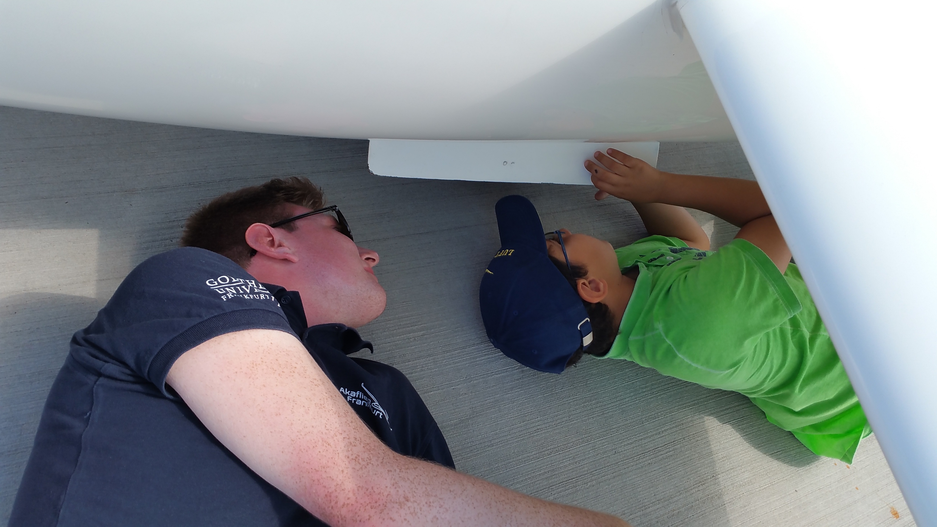 Zwei Tage lang informierten mindestens drei Akaflieger zeitgleich über die (Segel-)Fliegerei, die fliegerische Ausbildung und Forschungsthemen der Fliegergruppe.